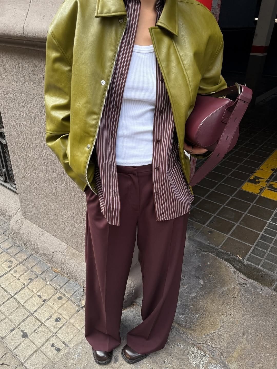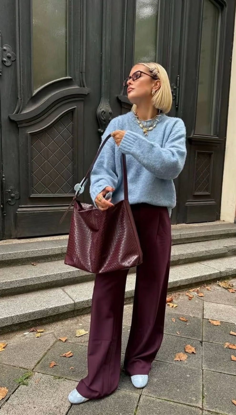 Burgundy and blue are emerging as another standout colour combination in 2026. The deep richness of burgundy paired with the cool tones of blue creates a balanced contrast that feels both bold and refined. Together, these colours bring depth to an outfit while maintaining a polished and sophisticated look.