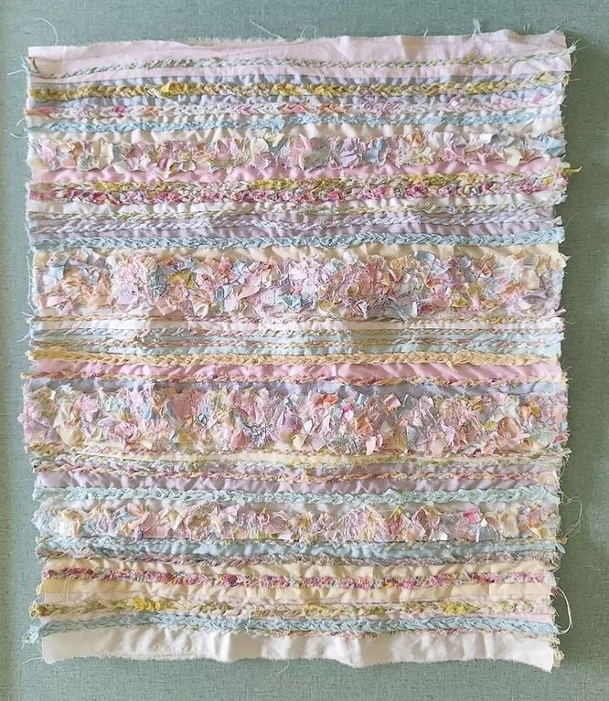 Every clothing piece has a history of where these scraps come from. The process starts by collecting scraps that can be re-used whether it's from old garments or leftover production waste, and then organize them into texture, fiber type and colour to brainstorm ideas of what you want to turn them into, whether it’s hair accessories or home decor.