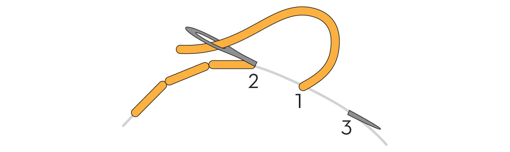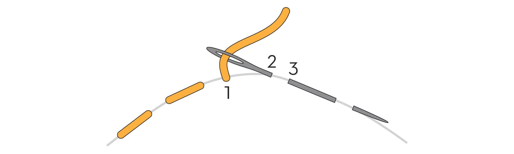 The backstitch is a hand stitching technique that offers a secure hold. It's sturdy because there is an overlap of the previous stitch. The backstitch helps mend tears in clothing and is great for seam stitching.